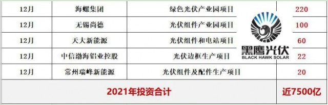 三.2021光伏制造擴產投資近7500億!這樣的投資力度,幾乎是2020年的兩倍;幾乎是2017、2018和2019三年投資力度的總和。