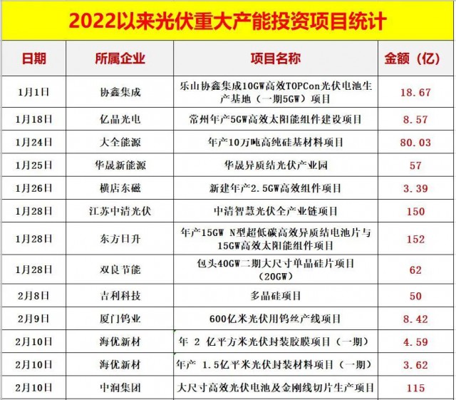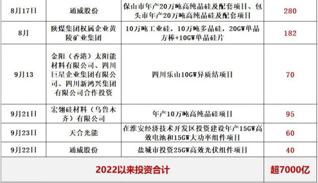 二.2022以來,光伏產能投資已超過7000億,特別是龍頭企業(yè)動輒百億的投資(公告)頻頻出現(xiàn),跨界者持續(xù)涌入,產能投資還在提速,階段性絕對過剩風險加劇。