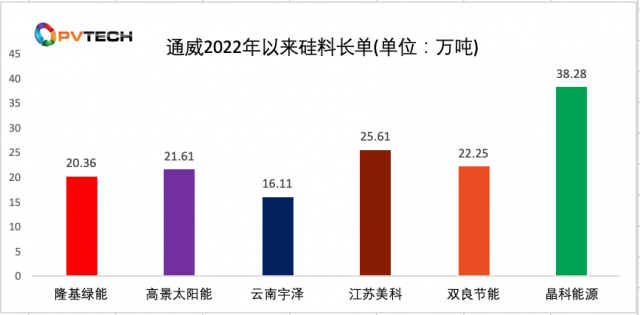 2022年通威硅料長單不完全統(tǒng)計,PV Tech