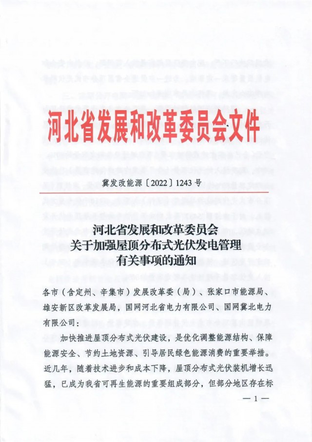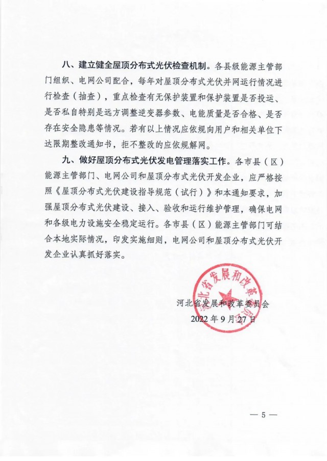 9月27日,河北省發(fā)改委發(fā)布《關(guān)于加強屋頂分布式光伏發(fā)電管理有關(guān)事項的通知》,通知指出,部分地區(qū)存在標(biāo)準(zhǔn)規(guī)范執(zhí)行不嚴(yán)、配電變壓器超容量接入等問題,給供電安全和電能質(zhì)量帶來一定影響。為進(jìn)一步促進(jìn)全省屋頂分布式光伏科學(xué)有序安全發(fā)展,通知提出:
