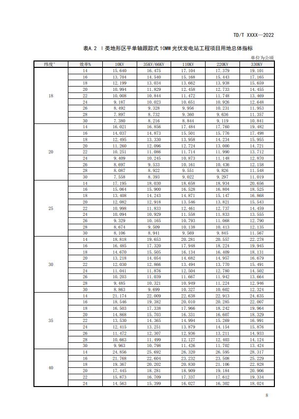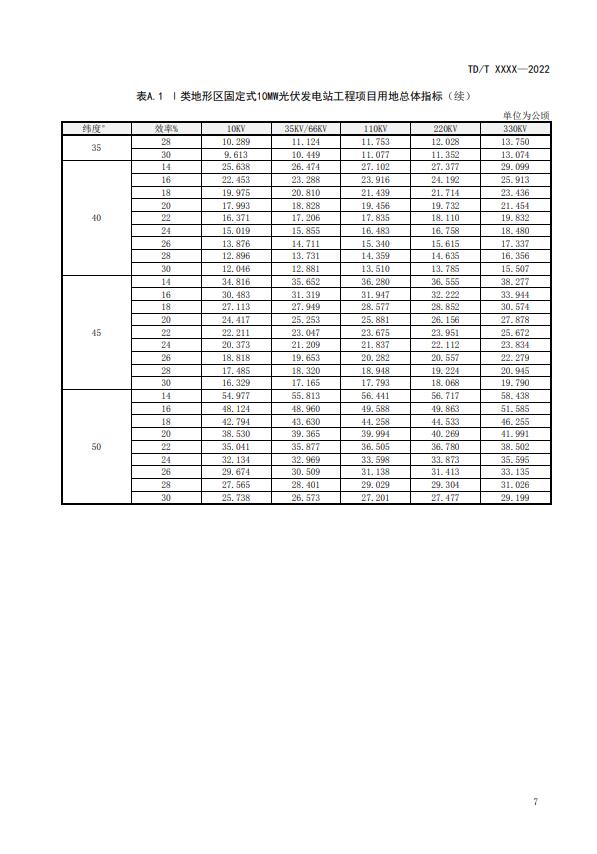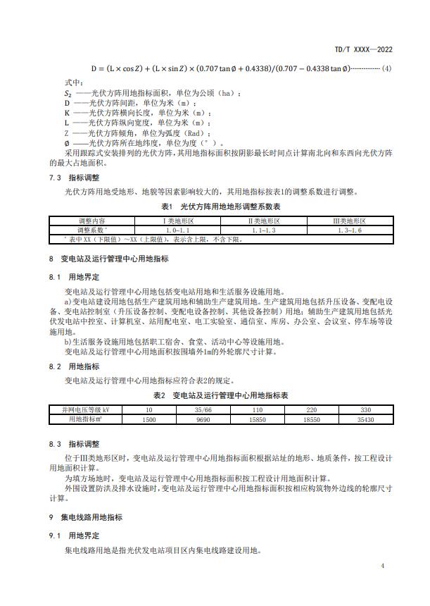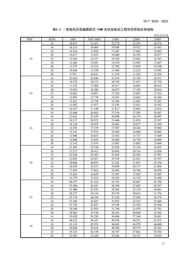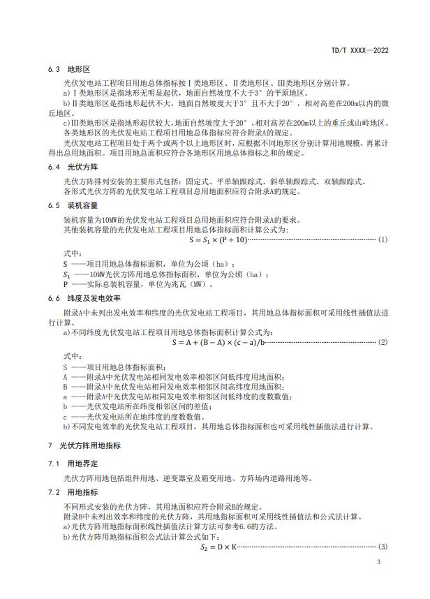 12月5日,自然資源部發(fā)布“《光伏發(fā)電站工程項目用地控制指標》等3項行業(yè)標準報批稿公示”,文件指出:光伏發(fā)電站工程項目用地總體指標按Ⅰ類地形區(qū)、Ⅱ類地形區(qū)、Ⅲ類地形區(qū)分別計算。光伏發(fā)電站工程項目處于兩個或兩個以上地形區(qū)時,應(yīng)根據(jù)不同地形區(qū)分別計算用地規(guī)模,再累計得出總用地面積。項目用地總面積應(yīng)符合各地形區(qū)用地總體指標之和的規(guī)定。