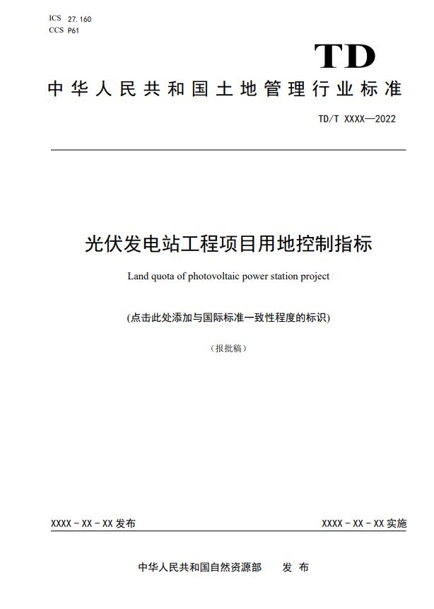 《光伏發(fā)電站工程項目用地控制指標》等3項行業(yè)標準報批稿公示