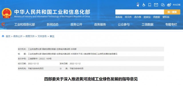 12月12日,工信部、國家發(fā)改委、住建部、水利部四部委發(fā)布《關(guān)于深入推進(jìn)黃河流域工業(yè)綠色發(fā)展的指導(dǎo)意見》。