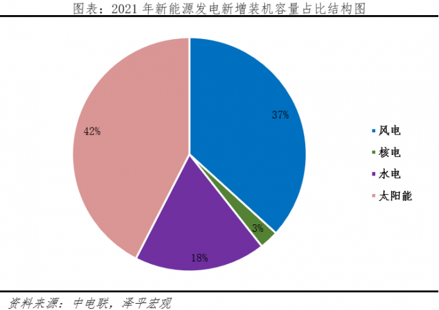 光伏是新能源發(fā)電端建設(shè)的核心領(lǐng)域之一,中電聯(lián)數(shù)據(jù)顯示,2021年我國太陽能新增裝機(jī)容量為54930兆瓦,同比增長14.0%,占新能源發(fā)電新增裝機(jī)總?cè)萘康?2%。