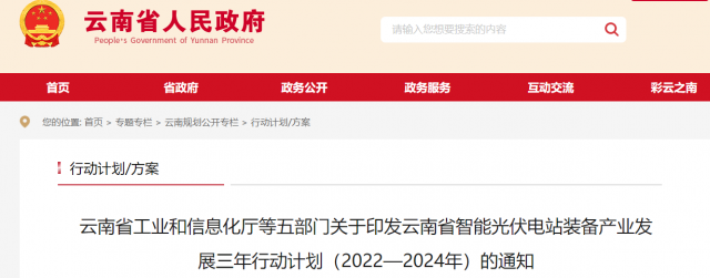 云南省工業(yè)和信息化廳等五部門關(guān)于印發(fā)云南省智能光伏電站裝備產(chǎn)業(yè)發(fā)展三年行動(dòng)計(jì)劃(2022—2024年)的通知