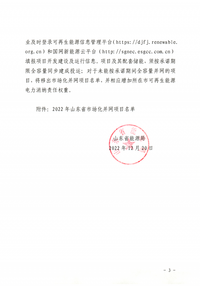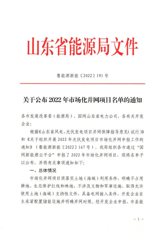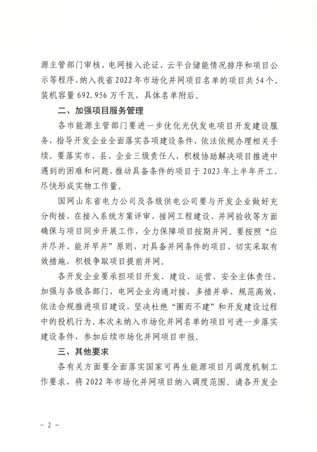 12月20日,山東省能源局公布2022年市場化并網(wǎng)光伏發(fā)電項(xiàng)目名單,共有54個項(xiàng)目入選,合計裝機(jī)7GW。具體名單如下:
