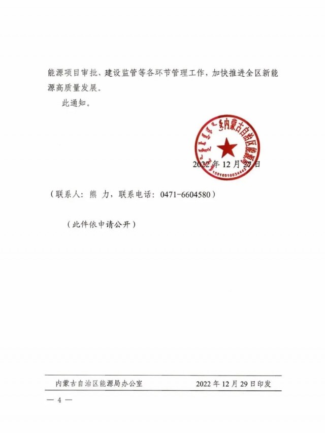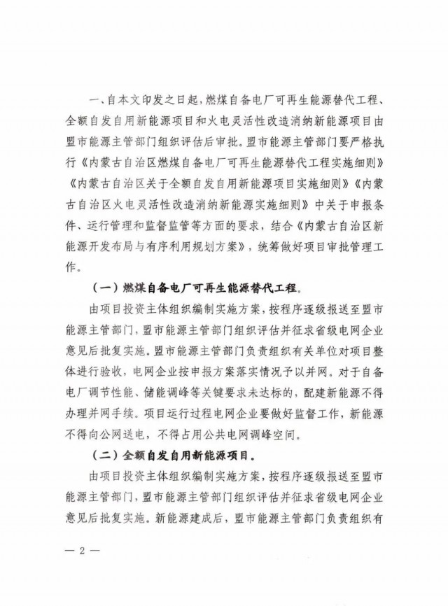 12月29日,內(nèi)蒙古自治區(qū)能源局發(fā)布關于下放部分市場化并網(wǎng)新能源項目審批權限的通知,通知指出:自本文印發(fā)之日起,燃煤自備電廠可再生能源替代工程全額自發(fā)自用新能源項目和火電靈活性改造消納新能源項目由盟市能源主管部門組織評估后審批。