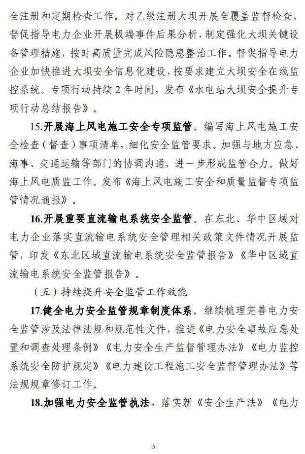 加強施工安全監(jiān)管和工程質(zhì)量監(jiān)督工作。對全國在建電力建設重點工程(水電、大型火電、抽水蓄能、特高壓工程、大型風電光伏工程)開展“四不兩直”施工安全及質(zhì)量監(jiān)督專項督查。做好以信用為基礎的新型電力安全監(jiān)管機制試點。