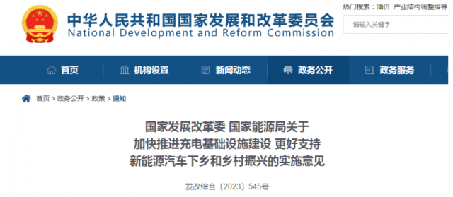 國家發(fā)展改革委 國家能源局關(guān)于加快推進(jìn)充電基礎(chǔ)設(shè)施建設(shè) 更好支持新能源汽車下鄉(xiāng)和鄉(xiāng)村振興的實(shí)施意見
