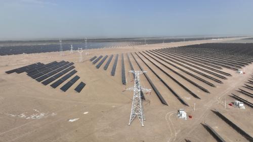 粵水電巴楚光伏項(xiàng)目位于巴楚縣三岔口,該項(xiàng)目總建設(shè)用地面積約9.3萬(wàn)畝,總建設(shè)規(guī)模為307萬(wàn)千瓦,共分五期建設(shè)。目前已并網(wǎng)裝機(jī)容量67萬(wàn)千瓦,可減少碳排放約100萬(wàn)噸。
