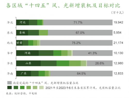 截至2023年6月末,全國31省區(qū)(不含港澳臺)發(fā)布的“十四五”期末累計風(fēng)、光裝機(jī)目標(biāo)共計13.7億千瓦,包括此期間新增風(fēng)、光裝機(jī)目標(biāo)8.3億千瓦。