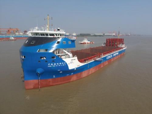 2023年10月16日,揚(yáng)州中遠(yuǎn)海運(yùn)重工有限公司新建全球首制700TEU純電池動(dòng)力集裝箱船“中遠(yuǎn)海運(yùn)綠水01”輪,由揚(yáng)州中遠(yuǎn)海運(yùn)重工有限公司碼頭開航至儀征捷水道進(jìn)行航行操作試驗(yàn),正式開啟本次試航之旅。