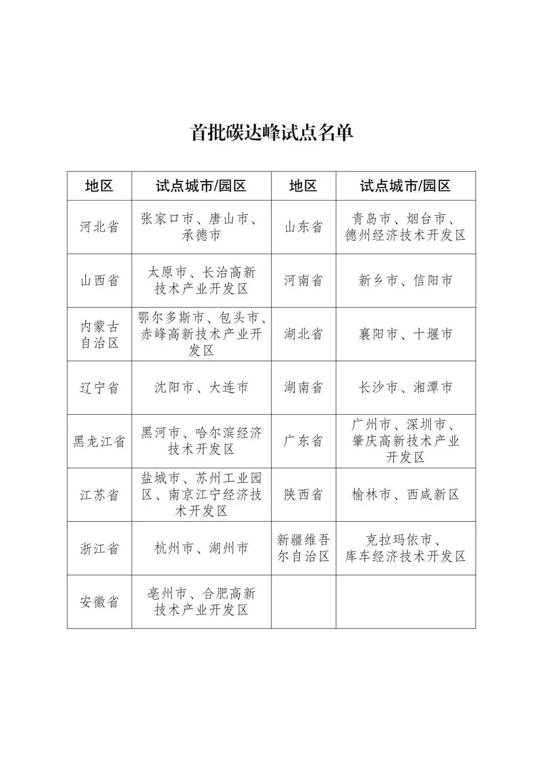 12月6日,國家發(fā)展改革委辦公廳發(fā)布關(guān)于印發(fā)首批碳達峰試點名單的通知。確定張家口市等25個城市、長治高新技術(shù)產(chǎn)業(yè)開發(fā)區(qū)等10個園區(qū)為首批碳達峰試點城市和園區(qū)。