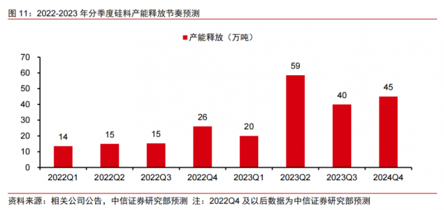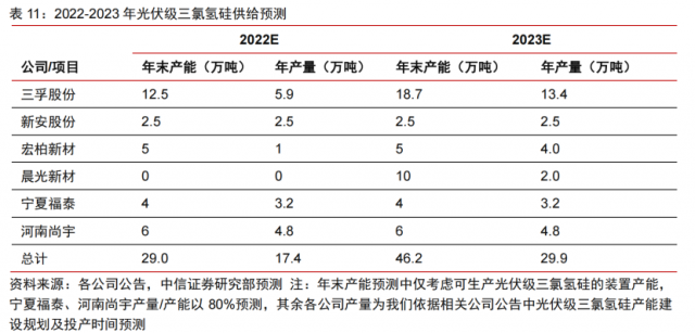 中信證券王喆在10月11日發(fā)布的研報中表示,根據(jù)2022-2023年多晶硅廠家擴產(chǎn)計劃,2022Q4季度與2023Q2季度將迎來硅料產(chǎn)能釋放密集期,可能會存在光伏級三氯氫硅出現(xiàn)短暫的供給缺口,屆時有望提振三氯氫硅價格,預計三氯氫硅高景氣度有望維持至2023Q2。