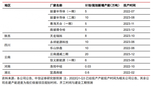 據(jù)悉,三氯氫硅為多晶硅生產(chǎn)及硅烷偶聯(lián)劑生產(chǎn)的必備原材料。中國為多晶硅的主要生產(chǎn)者,且新增產(chǎn)能主要集中于中國。多晶硅產(chǎn)能擴張十分迅速,中信證券王喆在10月11日發(fā)布的研報中統(tǒng)計得到,2022年新增產(chǎn)能將達約70萬噸,2023 年預計新增產(chǎn)能約164萬噸。