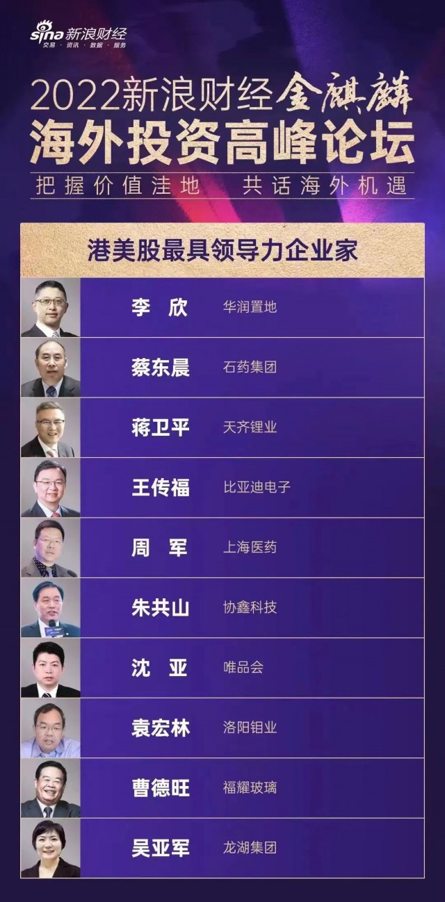 2022年9月23日,在新浪財經(jīng)主辦的2022年金麒麟海外投資峰會暨港美股最佳上市公司評選活動中,協(xié)鑫科技(03800.HK)憑借在光伏材料領(lǐng)域的科技創(chuàng)新與行業(yè)貢獻,榮膺“2022新浪財經(jīng)港美股最具成長潛力上市公司”,協(xié)鑫科技董事局主席朱共山先生榮獲“2022新浪財經(jīng)港美股最具領(lǐng)導(dǎo)力企業(yè)家”稱號,獲授該稱號的還有曹德旺、王傳福等10位杰出企業(yè)家。