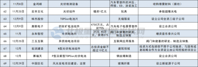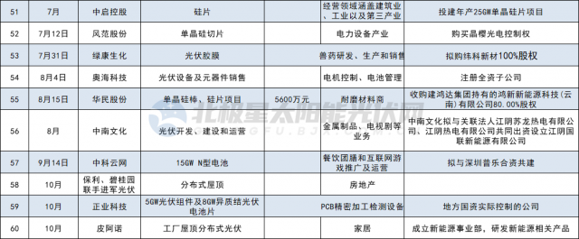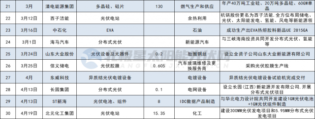 其他如多晶硅、硅片制造領(lǐng)域投資共7家,分別為合盛硅業(yè)、吉利、其亞集團(tuán)、清電能源、中啟控股、風(fēng)范股份、華民股份。光伏設(shè)備5家,分別為山東大業(yè)股份、東威科技、拓普集團(tuán)、奧??萍?、金鴻順。光伏膠膜3家,分別為中石化、信義儲電、綠康生化;此外,江蘇陽光、寶豐大手筆投資全產(chǎn)業(yè)鏈。