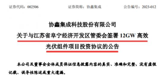 2月15日,協(xié)鑫集成發(fā)布公告稱(chēng),該公司擬在江蘇省阜寧經(jīng)濟(jì)開(kāi)發(fā)區(qū)投資建設(shè)12GW高效光伏組件項(xiàng)目。