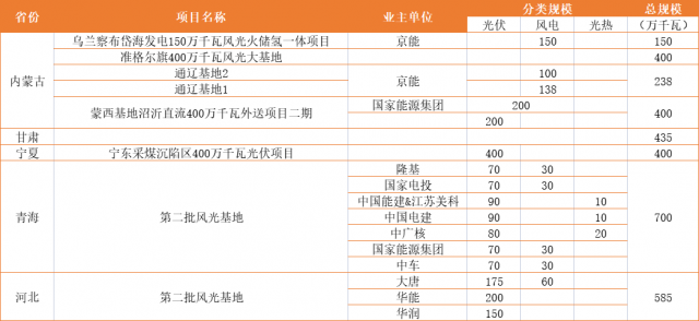 根據(jù)公開信息來看,庫布奇沙漠南部、中北部沙漠基地,寧夏騰格里沙漠基地,甘肅巴丹吉林沙漠基地、阿拉善盟千萬千瓦級風(fēng)光基地、烏蘭布和沙漠基地、青海海南戈壁基地均已獲批并完成相應(yīng)規(guī)劃,更多的沙戈荒基地則仍在陸續(xù)申報中。