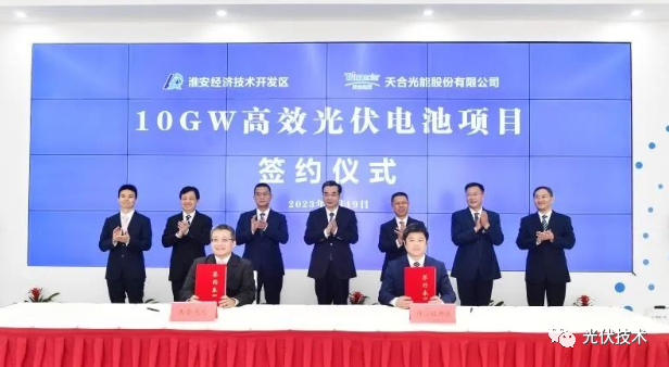 活動(dòng)開始前,參加活動(dòng)的領(lǐng)導(dǎo)共同見證了淮安經(jīng)濟(jì)技術(shù)開發(fā)區(qū)與天合光能股份有限公司總投資50億元的10GW高效光伏電池生產(chǎn)項(xiàng)目簽約,參觀了天合光能淮安基地一期項(xiàng)目光伏組件和光伏電池車間。