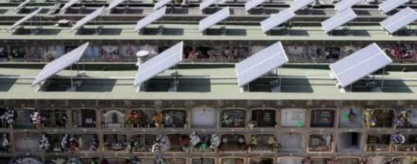 2008年,西班牙巴塞羅那附近小鎮(zhèn)桑塔克羅瑪將大量太陽(yáng)能電池板安放到了一個(gè)“極少有人打攪的地方”——墓地。這個(gè)墓地的特別之處在于,462塊整齊劃一的太陽(yáng)能電池板出現(xiàn)在墓地內(nèi)部,棺材一層層碼放起來(lái),其中最高的“棺材樓”竟達(dá)到了五層,太陽(yáng)能電池板就放在最高一層棺材上面。這些太陽(yáng)能電池板生產(chǎn)的電能足夠滿足60戶居民的年需求,能讓該鎮(zhèn)一年減少向大氣中排放大約62噸二氧化碳。