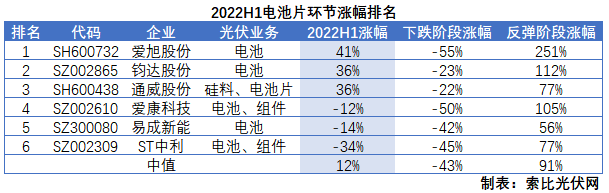 個(gè)股方面,愛旭股份憑借平均量產(chǎn)效率高達(dá)25.5%的ABC電池技術(shù),漲幅達(dá)到41%,上行階段漲幅更是高達(dá)241%;鈞達(dá)股份控股子公司捷泰科技將在今年下半年投產(chǎn)8GW TOPCon產(chǎn)能,助推股價(jià)漲幅達(dá)到36%;遠(yuǎn)期規(guī)劃22GW HJT產(chǎn)能的愛康科技,上行階段漲幅亦達(dá)到105%。