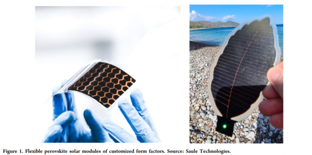 塑料箔的使用還為光伏產(chǎn)品提供了一系列新的優(yōu)勢(shì),其中非成本相關(guān)因素可以提供重要的杠桿作用,例如重量輕、比功率高以及易于與各種表面集成。(7) 將鈣鈦礦與成熟的光伏技術(shù)區(qū)分開來(lái)的一個(gè)重要因素是高水平產(chǎn)品定制的可能性,符合客戶在特定應(yīng)用中的需求。 這可以在同時(shí)進(jìn)入市場(chǎng)的同時(shí)實(shí)現(xiàn)更長(zhǎng)時(shí)間的技術(shù)孵化,從而緩解大規(guī)模市場(chǎng)進(jìn)入的挑戰(zhàn)。(8) 定制的柔性鈣鈦礦太陽(yáng)能組件示例如圖 1 所示。