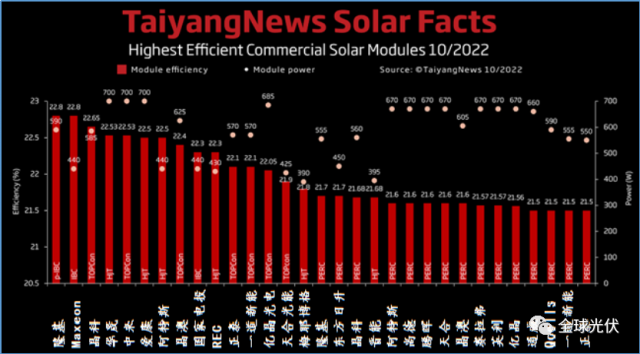 TaiyangNews昨日發(fā)布了10月的全球光伏組件最高效率排名: