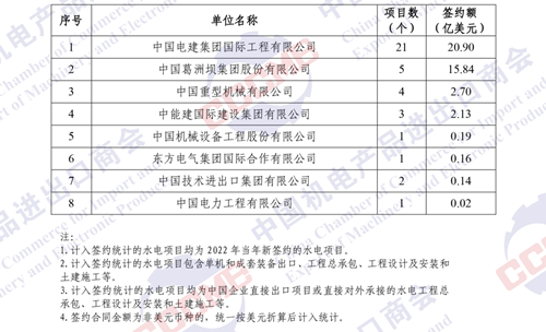 2022年中國企業(yè)境外水電項目簽約額排名