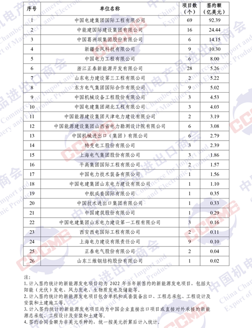 2022年境外電力項目簽約排行榜