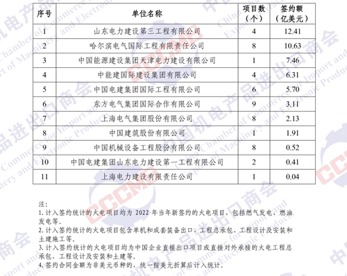 2022年中國企業(yè)境外火電項目簽約額排名