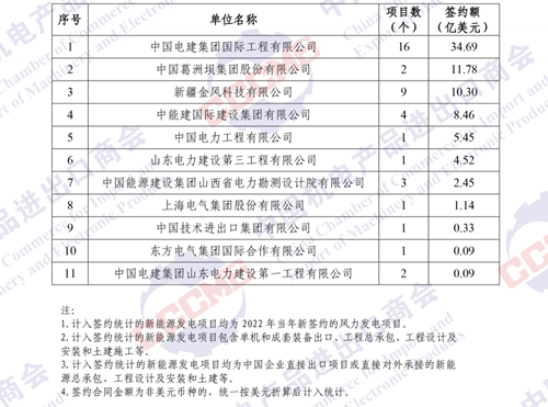 2022年中國企業(yè)境外風(fēng)電項目簽約額排名