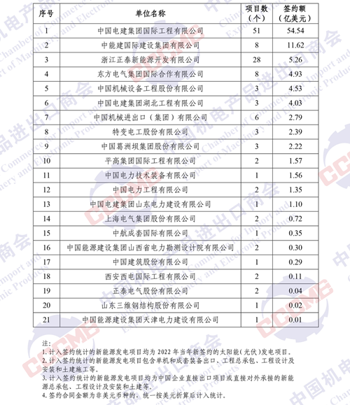 2022年中國企業(yè)境外太陽能(光伏)項目簽約額排名