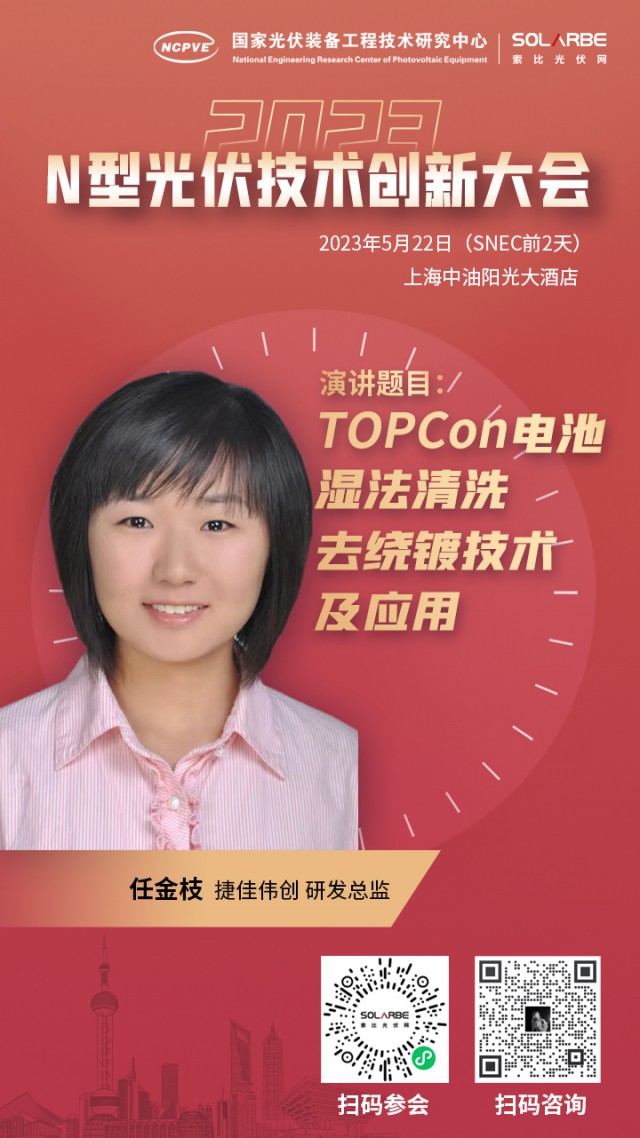 5月22日,捷佳偉創(chuàng)受邀參加2023年首屆N型光伏技術(shù)創(chuàng)新大會(huì),公司研發(fā)總監(jiān)任金枝將發(fā)表題為“TOPCon電池濕法清洗去繞鍍技術(shù)及應(yīng)用”的主題演講,與晶科能源、湖南紅太陽、帝爾激光等多家企業(yè)探討TOPCon電池量產(chǎn)降本增效的解決方案。