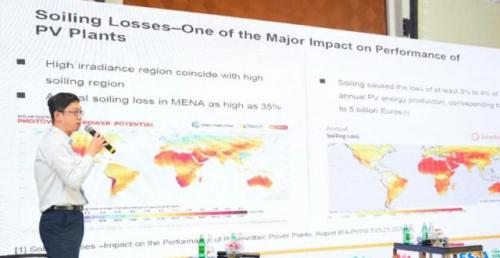 張曦在討論中指出,清掃機(jī)器人系統(tǒng)(ARCS)在減少光伏電站灰損方面發(fā)揮了重要作用,通過高頻、高效清掃組件,能夠明顯降低電站灰損和運(yùn)維成本。在大型電站早期設(shè)計(jì)階段,將清掃機(jī)器人與光伏系統(tǒng)其他核心因素,如組件、跟蹤支架、及電站排布方式進(jìn)行綜合考慮,能夠最大化提高系統(tǒng)的兼容性和性能。在中東地區(qū),將清掃機(jī)器人集成到電站系統(tǒng)中已成為共識(shí),智能清掃機(jī)器人成為當(dāng)?shù)毓夥娬緲?biāo)配的“第四大件”。