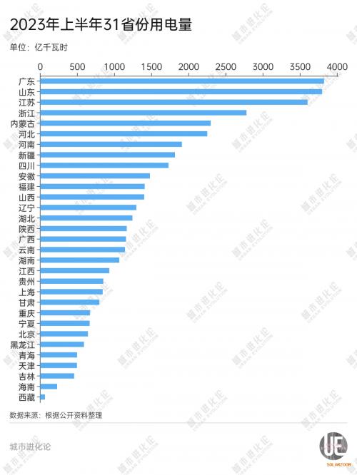 廣東、山東、江蘇全社會用電量在3000億千瓦時(shí)階段“三雄相爭”,浙江、內(nèi)蒙古和河北競速2000億千瓦時(shí)階段,而剩下的河南、新疆等12個(gè)全社會用電量達(dá)到千億千瓦時(shí)的省份,只能爭奪剩下的4個(gè)席位。