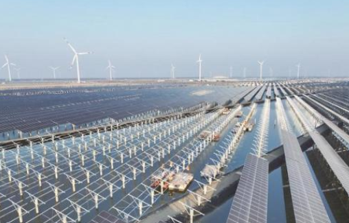 2月20日,施工人員在施工現(xiàn)場加緊建設(shè)。連日來,如東沿海的華能如東200兆瓦“漁光互補”光伏發(fā)電項目快速有序推進。該項目占地面積3000余畝,建成后,年均發(fā)電量約23390萬千瓦時,相當于每年節(jié)約標煤7萬噸,減排二氧化碳15.43萬噸。