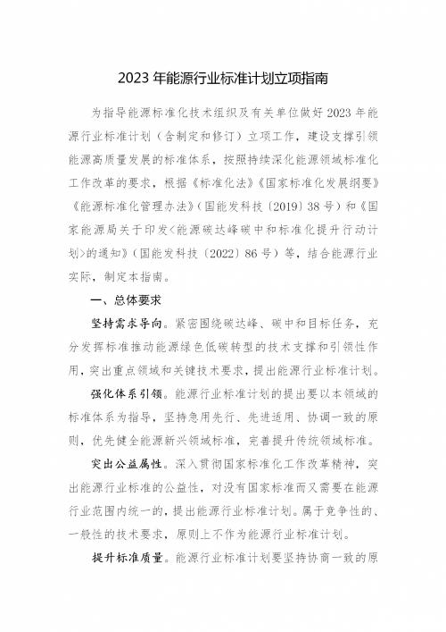 國(guó)家能源局綜合司關(guān)于印發(fā)《2023年能源行業(yè)標(biāo)準(zhǔn)計(jì)劃立項(xiàng)指南》的通知