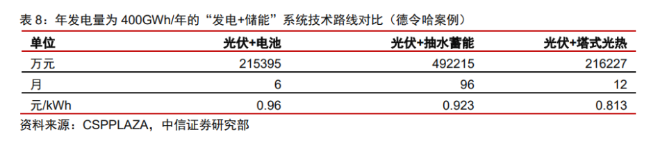 熔鹽儲(chǔ)能使用壽命可達(dá) 25-30 年,運(yùn)行穩(wěn)定性好、無爆炸、火災(zāi)等危險(xiǎn),具備安全友 好等特性。根據(jù)中控太陽能測(cè)算,光熱儲(chǔ)能調(diào)峰電站為光伏配置 20%熔鹽儲(chǔ)能服務(wù)可以有 效解決光伏棄光問題,同時(shí)在相同的儲(chǔ)能調(diào)峰補(bǔ)貼下,光伏+光熱儲(chǔ)能調(diào)峰電站的綜合上 網(wǎng)電價(jià)低于光伏+鋰電池儲(chǔ)能。 除光熱電站配套外,熔鹽儲(chǔ)能還可用于清潔供熱、提供工業(yè)蒸汽、火電靈活性改造等 方面。熔鹽儲(chǔ)能系統(tǒng)可以使用太陽能、谷電、工業(yè)余熱等方式加熱熔鹽工質(zhì)進(jìn)行儲(chǔ)存,在需求時(shí)段通過熔鹽放熱轉(zhuǎn)換為熱能實(shí)現(xiàn)工業(yè)蒸汽制備、建筑供熱等用途。以熔鹽儲(chǔ)熱供暖 系統(tǒng)為例,在夜間谷電時(shí)段可以通過谷電加熱熔鹽進(jìn)入高溫熔鹽罐,在用熱時(shí)段通過熔鹽 泵抽出高溫熔鹽與市政用水在換熱器中進(jìn)行熱交換為住宅小區(qū)提供熱水。熔鹽儲(chǔ)熱供暖系 統(tǒng)改造時(shí)只需要將燃煤鍋爐替換為熔鹽儲(chǔ)熱-加熱-換熱系統(tǒng),供水管道和末端設(shè)備可繼續(xù) 使用無需改造,改造建設(shè)成本較低;與電采暖相比,充分利用谷電加熱使運(yùn)行費(fèi)用大幅下 降,提高了供暖系統(tǒng)的經(jīng)濟(jì)性。