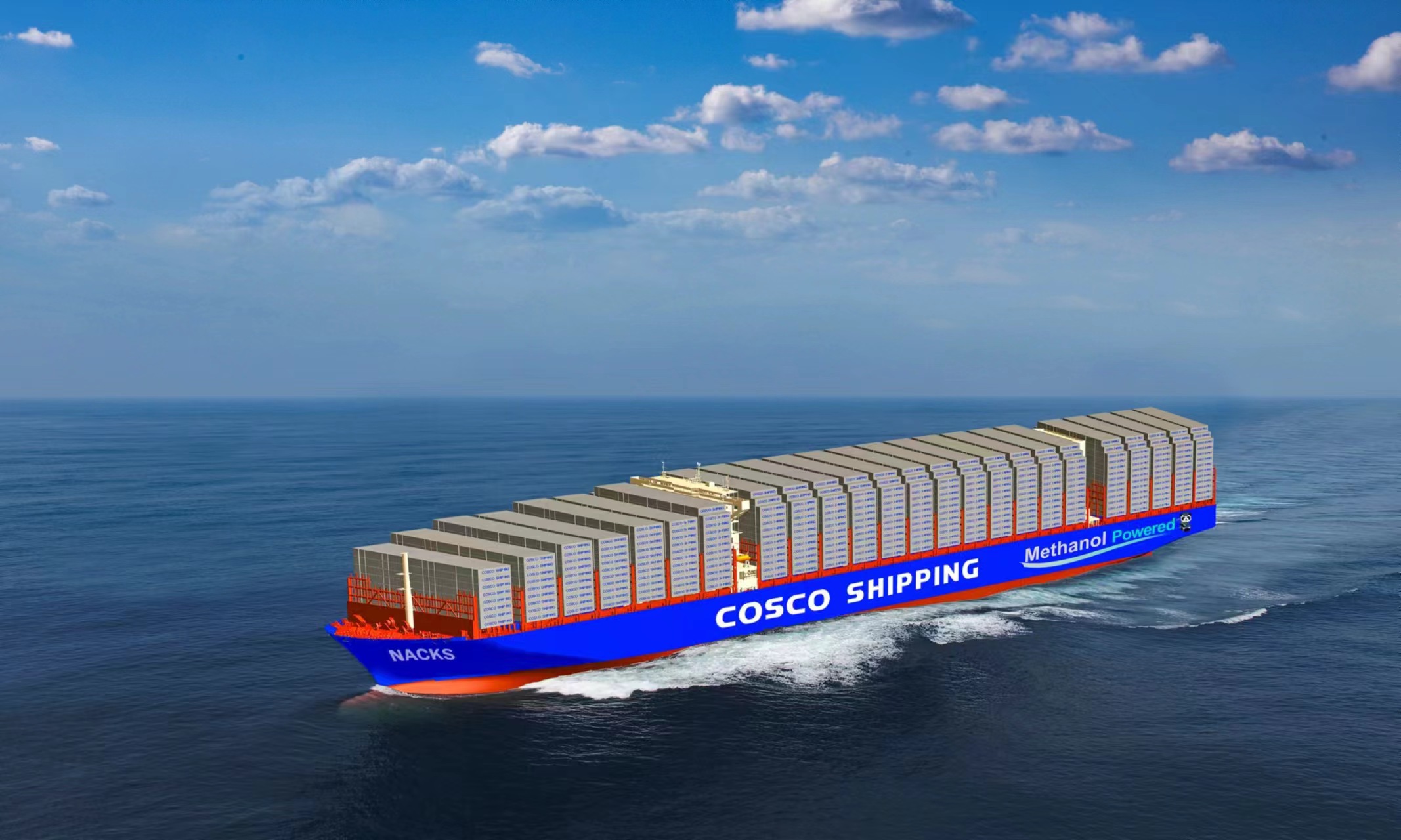 中遠海運集運24000標箱甲醇雙燃料動力集裝箱船效果圖