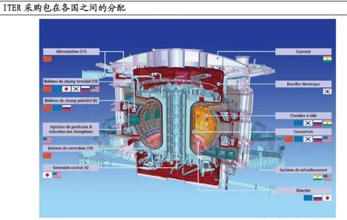國際上,國際熱核聚變實(shí)驗(yàn)堆ITER是全球在建的規(guī)模最大的可控磁約束核聚變裝置,由歐、中、俄、韓、日、美、印等7 方30 個國家聯(lián)合參與建設(shè),其中中方實(shí)物+現(xiàn)金貢獻(xiàn)度達(dá)9%。
