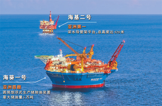 這一天,兩個“能源重器”——亞洲首艘圓筒型浮式生產儲卸油裝置(FPSO)“海葵一號”、亞洲第一深水導管架平臺“海基二號”攜手上崗,標志著我國全類型深水油氣裝備的設計、建造和安裝能力達到世界一流水平。