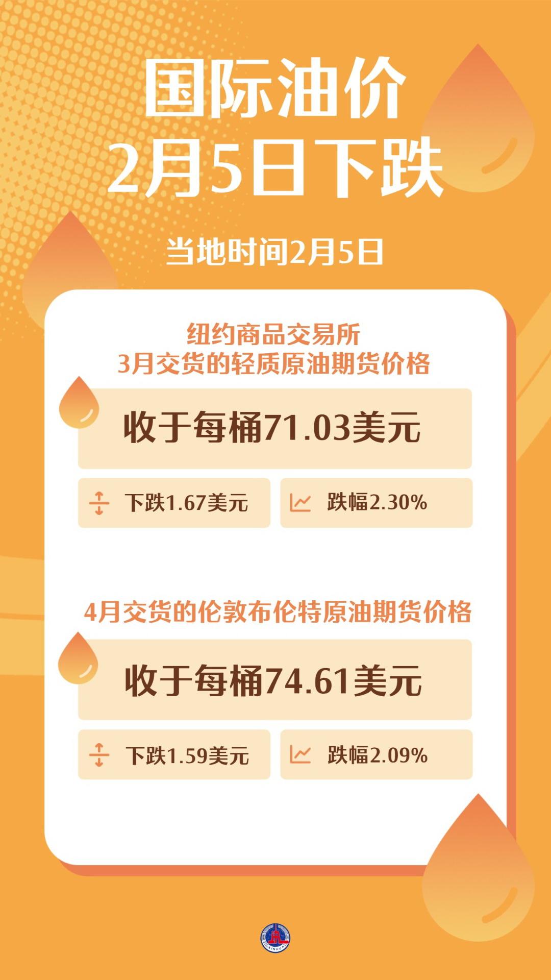 (圖表)國(guó)際油價(jià)2月5日下跌