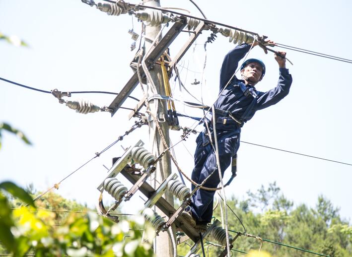 六陳供電所勝塘2號臺區(qū)工程正在進(jìn)行緊張調(diào)試工作(余弦攝)