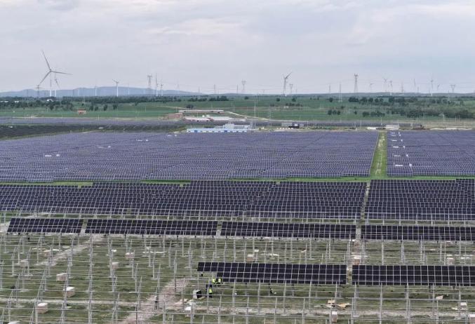這是張家口市康??h張紀鎮(zhèn)一處施工中的光伏發(fā)電場(7月11日攝,無人機照片)。新華社記者 楊世堯 攝