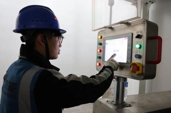 12GW高性能鋰離子儲能電池項目現場,工作人員正在調試設備。趙菠攝