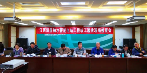 驗收委員會會議于2019年12月6日在南昌召開。會議由王忠耀副院長主持。會議首先由主任委員王忠耀介紹了竣工驗收的依據(jù)、程序和驗收委員會成員,隨后,工程運行管理單位洪屏公司李幼勝董事長致詞,會議先后聽取了洪屏抽水蓄能有限公司關(guān)于工程建設(shè)、電站運行管理及竣工驗收專項驗收情況的匯報,設(shè)計院關(guān)于工程設(shè)計情況的匯報,以及驗收專家組關(guān)于驗收結(jié)論意見的介紹。與會各位委員、代表就工程竣工驗收條件和存在的問題進行了研究和討論。驗收委員會同意江西洪屏抽水蓄能電站通過工程竣工驗收。