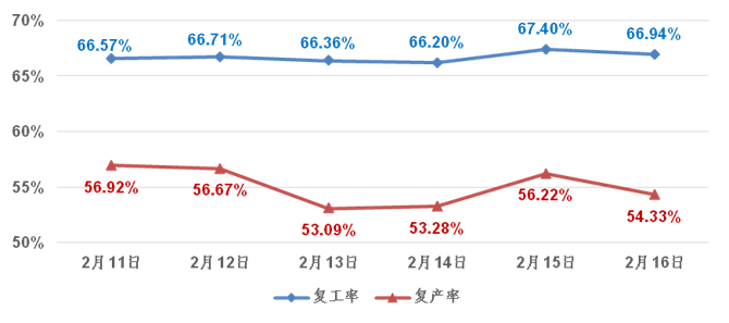 全省10千伏及以上企業(yè)2月11日以來復工復產走勢