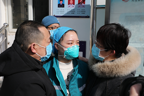 離別時(shí)刻,家人縱有千般不舍,只能道一聲“珍重”,并目送他們?nèi)デ胺?,因?yàn)檫@場(chǎng)戰(zhàn)“疫”必須要打贏!