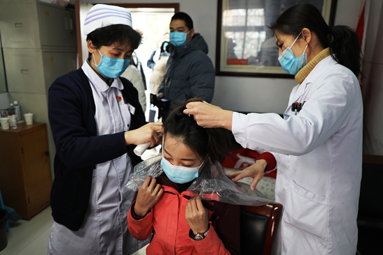 “沒事,頭發(fā)剪掉還可以再長(zhǎng)出來,我們現(xiàn)在最要緊的工作就是與疫情作斗爭(zhēng),頭發(fā)剪短工作起來就更方便?!?/p>